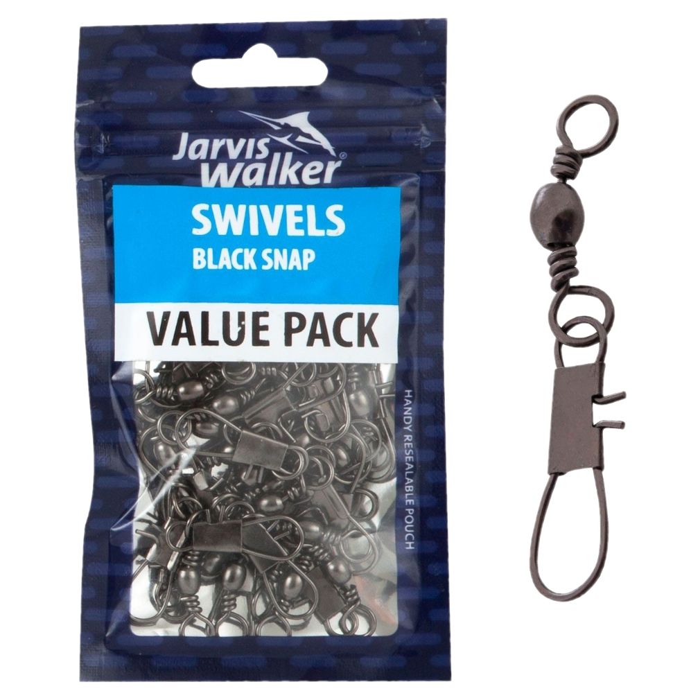 1 Packet of Jarvis Walker Black Barrel Swivels With Snaps - Fishing Swivels