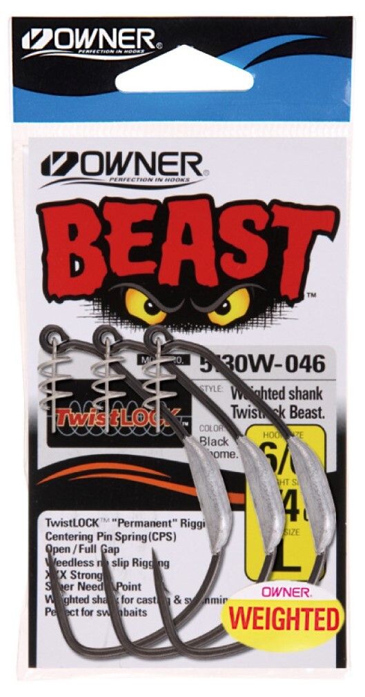 1 Packet of Owner 5130W Beast Weighted Hooks with Twistlock Centering Pins