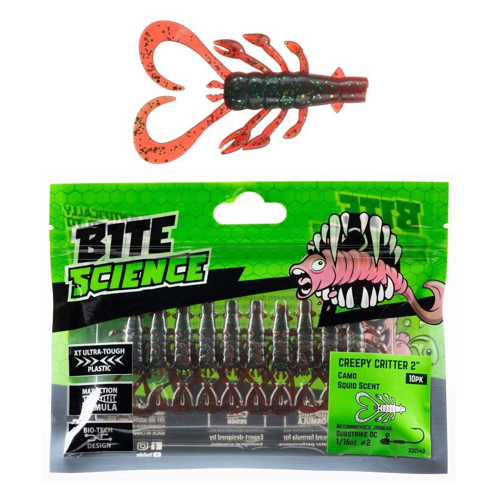 10 Pack of 2 Inch Bite Science Creepy Critter Soft Plastic Lures - Camo