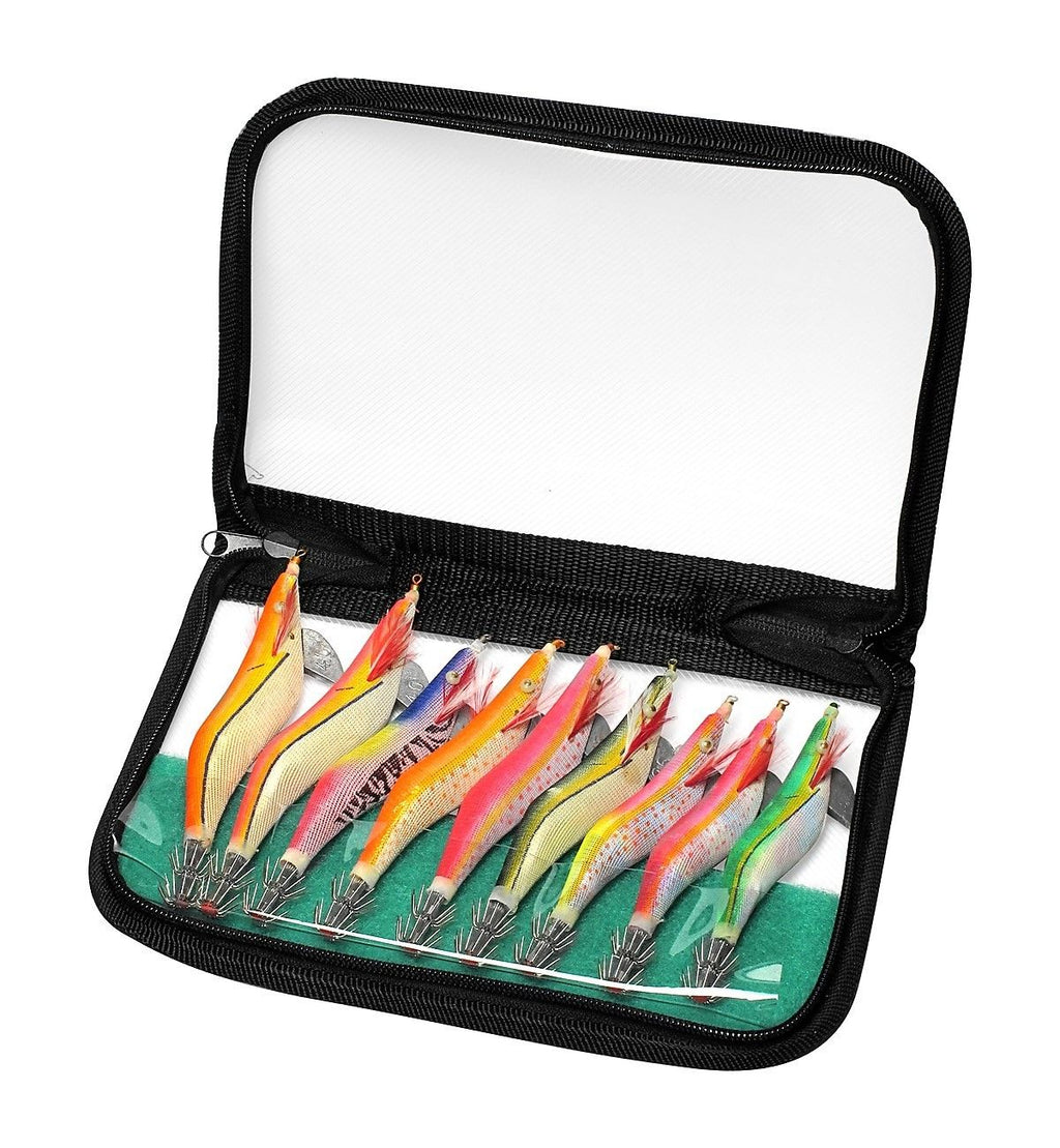 10 X Assorted Premium Squid Jigs In Zip Up Pouch - Large