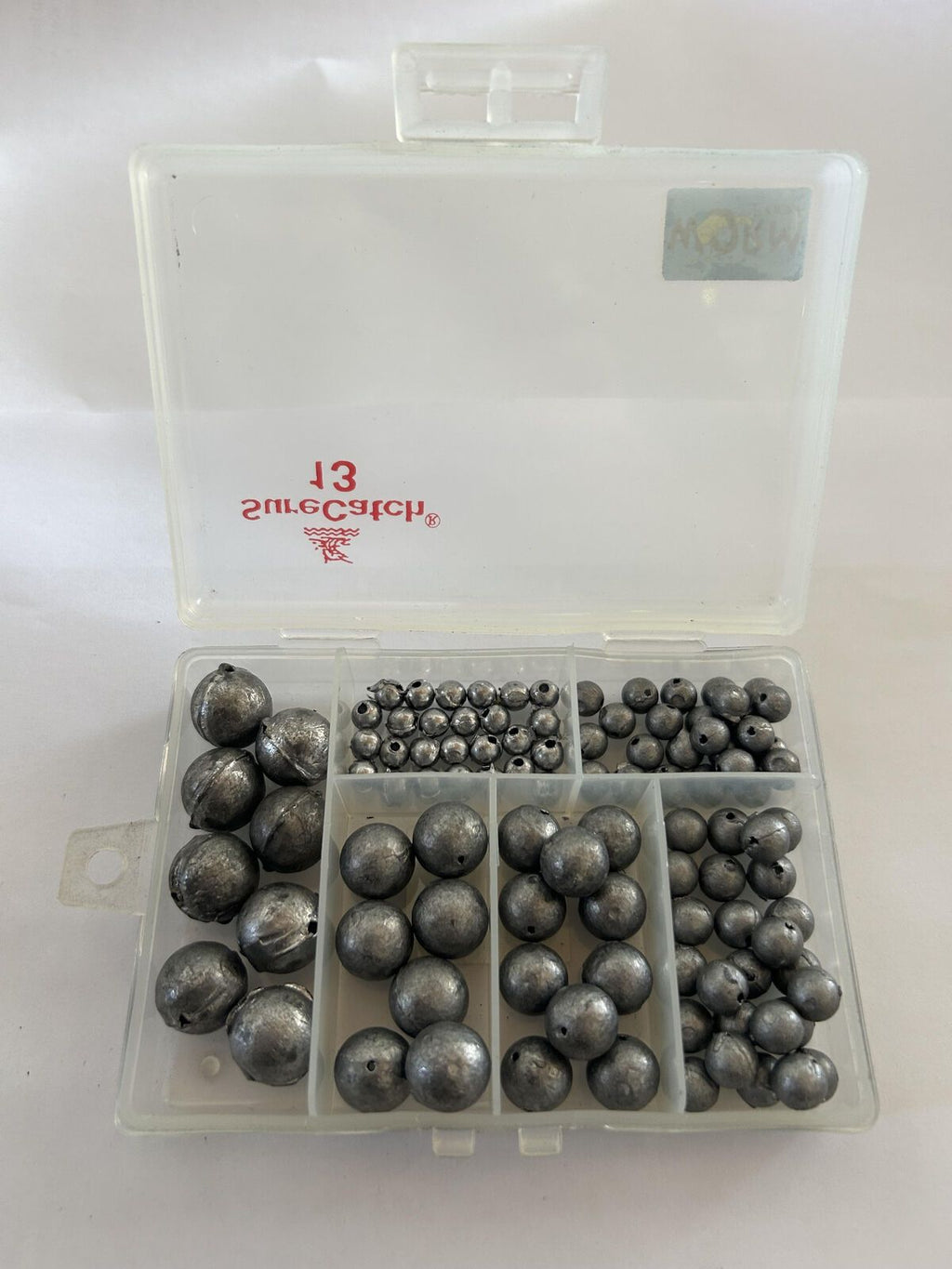 100 Piece Ball Sinker Pack in Tackle Box - Assorted Sizes