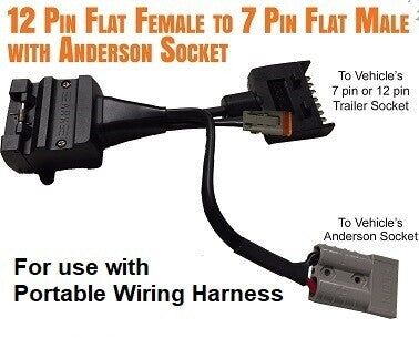 12pin Flat to Trailer - 7pin Flat to Vehicle with Anderson Socket