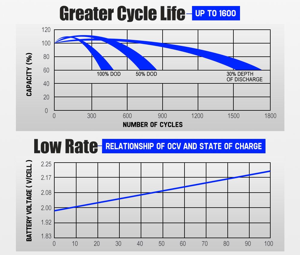 Maintenance Free: Low self-discharge, less prone to sulfation and excellent