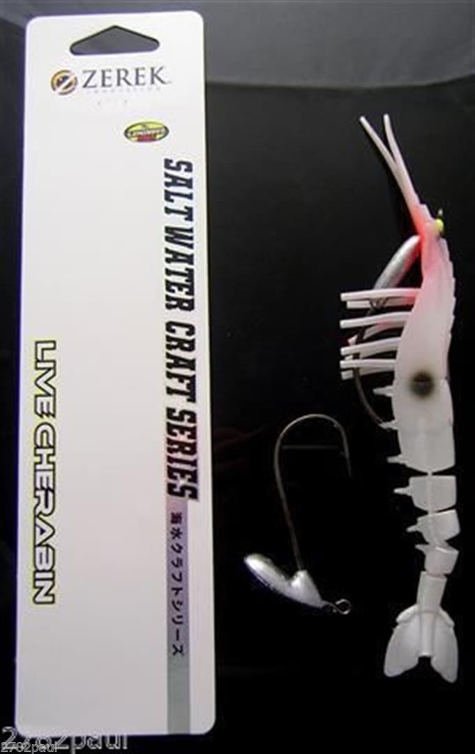 145mm Zerek Live Cherabin Pre Rigged Lumo Eyes Fishing Lure with Bonus Jig Head