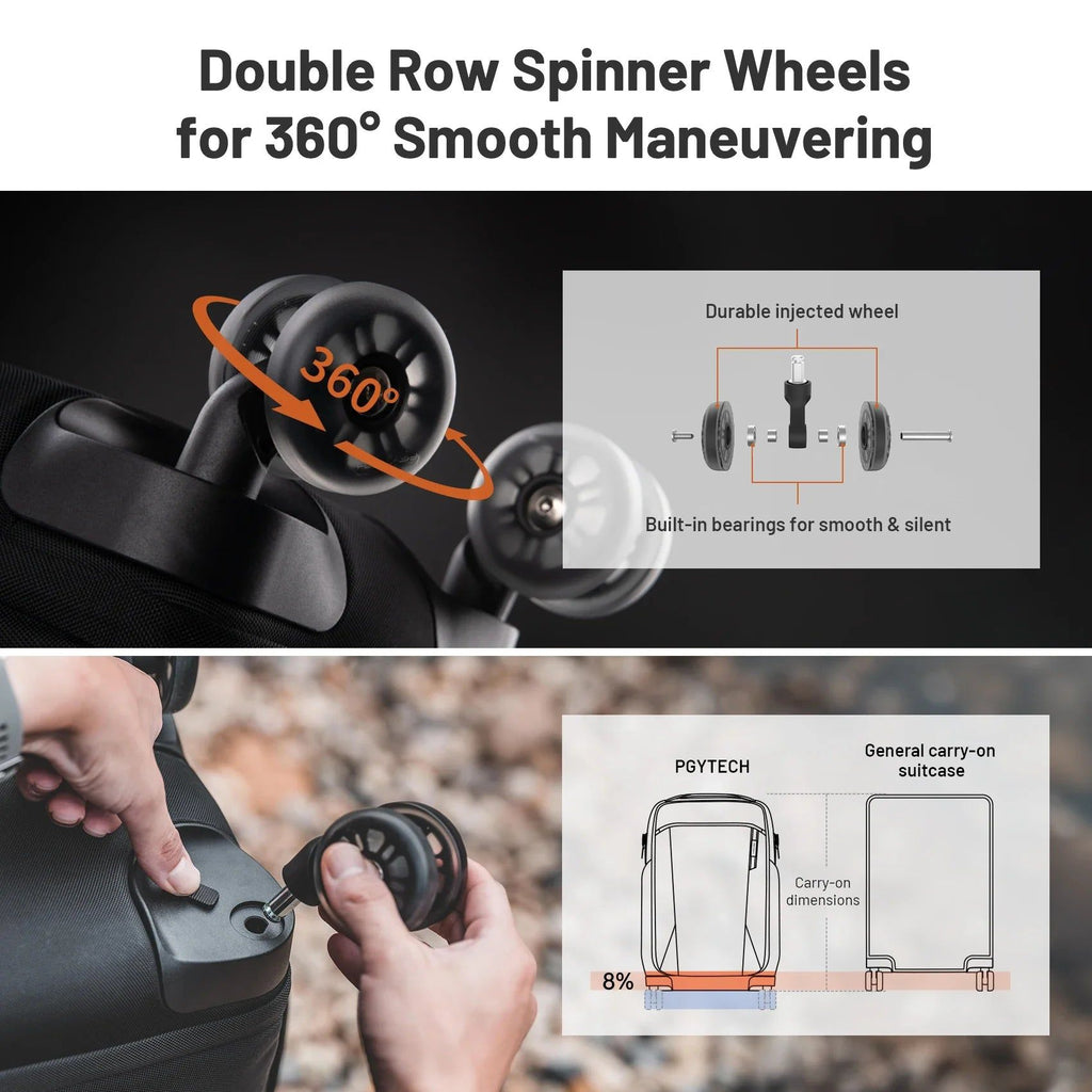 Need more space? The 10L expandable front compartment fits everything from gimbals to extra layers. Built with rugged PU double-row wheels and a wide, three-stage aluminum handle, this case balances convenience with durability. Whether you're a photographer, technician, or traveler on the move, this all-in-one gear hauler is your reliable companion for getting the job done in style and comfort.