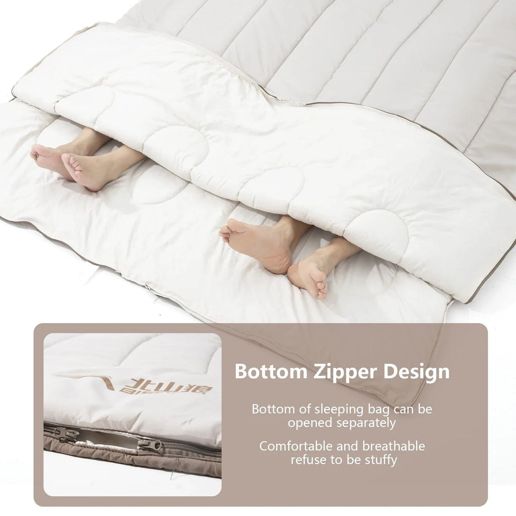 2-in-1 Design: Easily separates into two single sleeping bags for flexibility