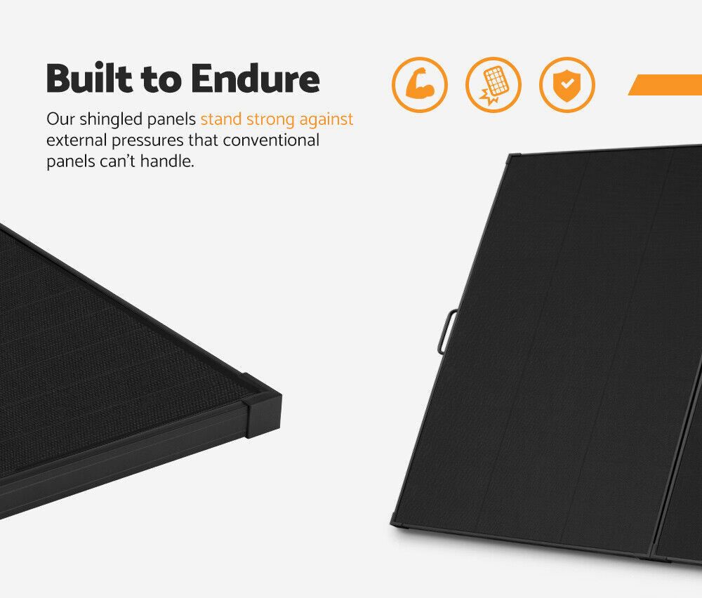 Our 200W Shingled Solar Panel Kit is an innovative off-grid power solution. This complete set includes a connection cable, robust fold-out legs, durable steel fasteners, a solar regulator, and handy alligator clips, this kit is designed for convenience. Just connect your 12V battery, and you're all set to power your devices during camping trips or when venturing off the grid.
