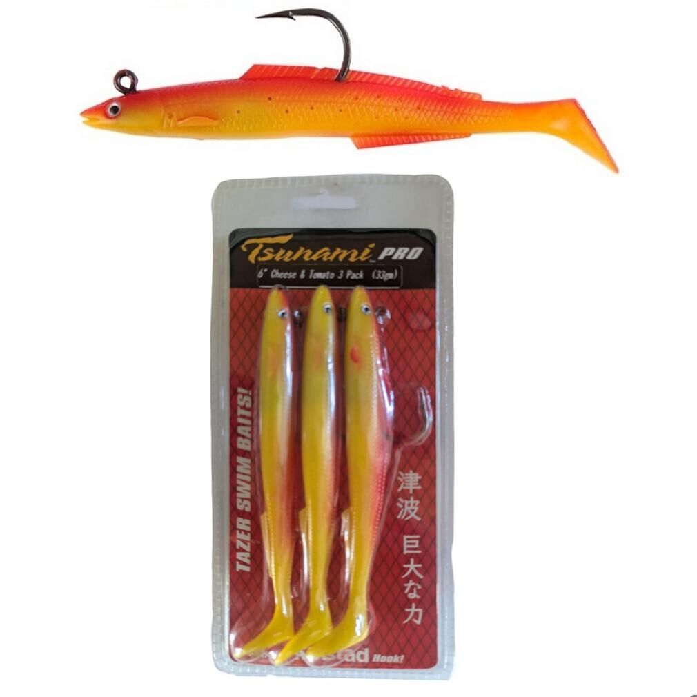 3 Pack of 6 Inch Rigged Tsunami Tazer Swim Bait Soft Plastics - Cheese & Tomato