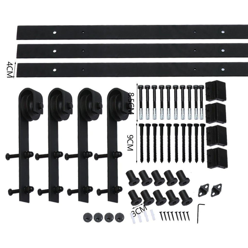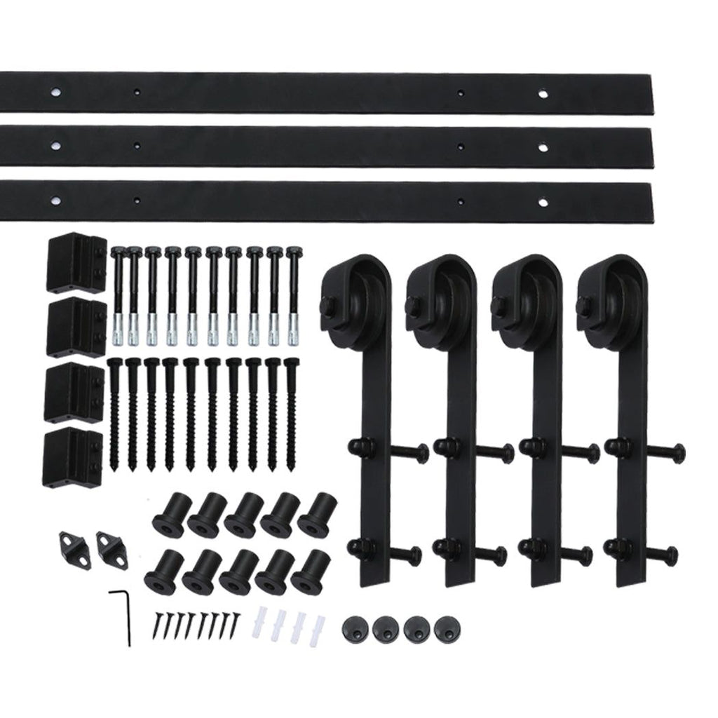 Built with heavy-duty materials and a black powder-coated finish this system is designed for lasting durability and smooth operation. The roller stopper keeps your doors securely in place preventing unnecessary movement while the strong floor guide ensures optimal alignment for seamless gliding. To enhance safety the anti-jump appliance prevents rollers from coming off the track providing a stable and secure installation.