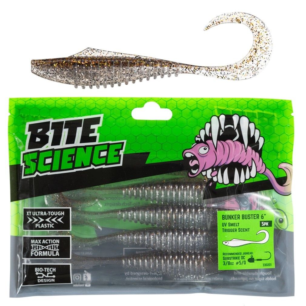 5 Pack of 6 Inch Bite Science Bunker Buster Soft Plastic Lures - UV Smelt