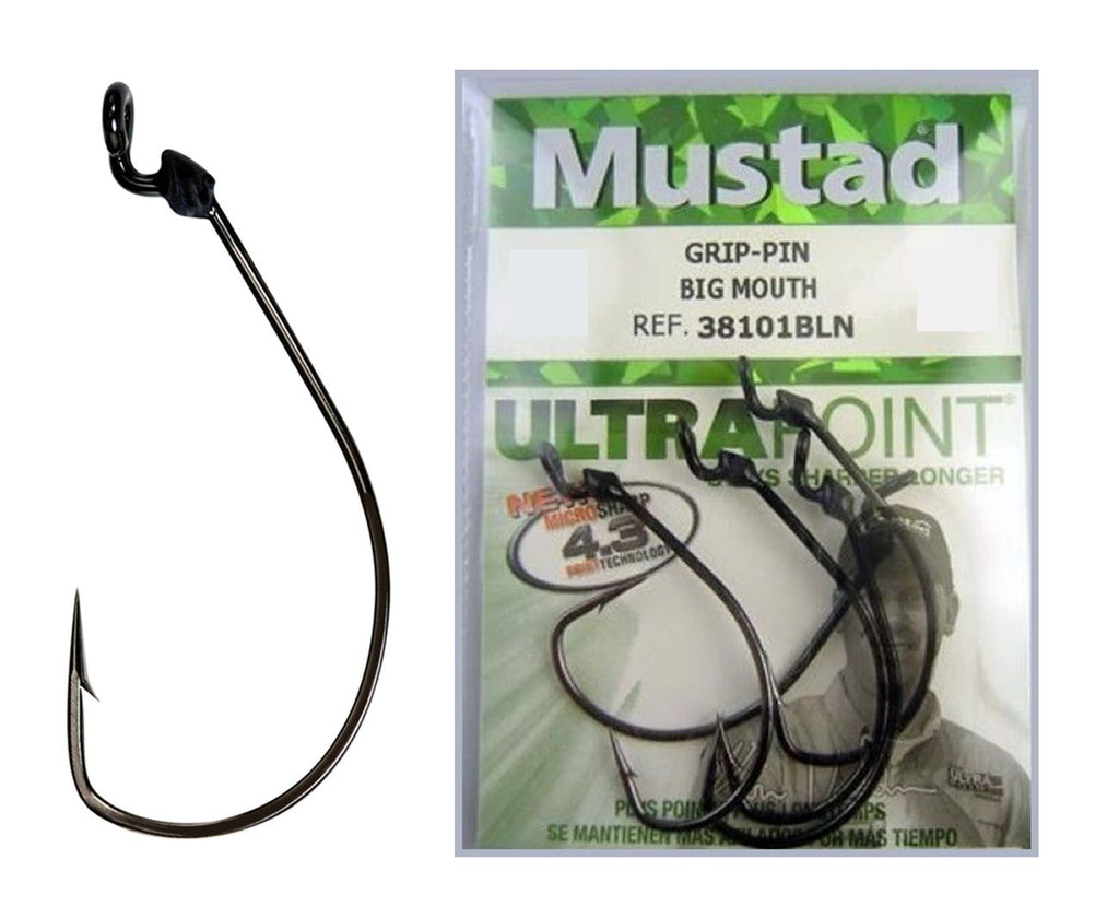 5 Pack of Size 2/0 Mustad 38101BLN Grip Pin Big Mouth Ultra Point Fishing Hooks