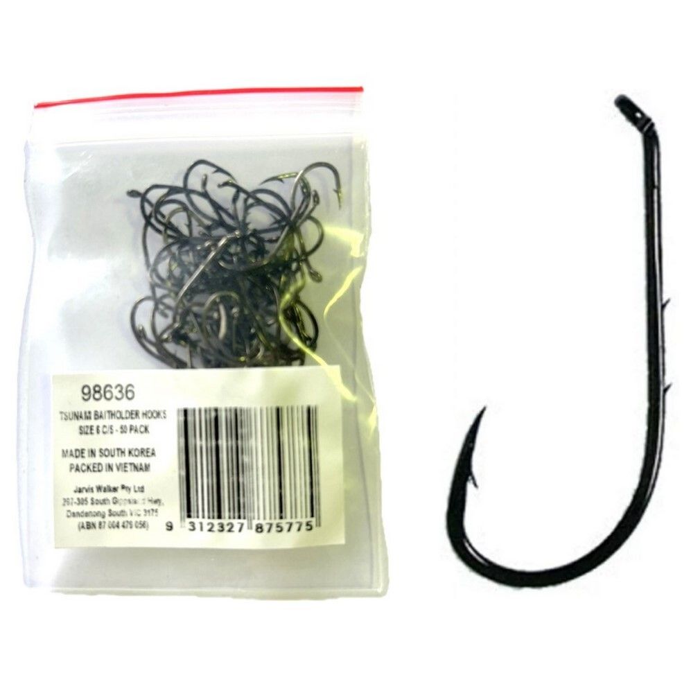 50 Pack of Tsunami Size 6 Chemically Sharpened Black Nickel Baitholder Hooks