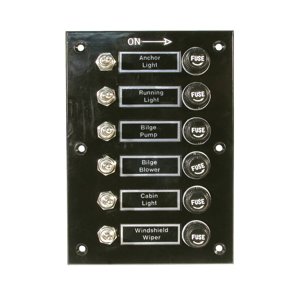 Discover the epitome of functionality and affordability with our 6 Gang Switch with Panel BLK Bakelite, a versatile and cost-effective solution for streamlined electrical control on your vessel or vehicle. Crafted with precision, this switch panel features a Bakelite face panel pre-wired with a common supply to fuse, offering a hassle-free installation experience.