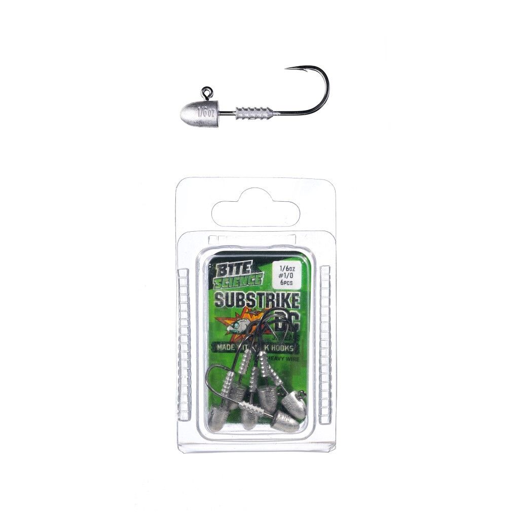 6 Pack of 1/6oz Size 1/0 Bite Science Substrike DC Jigheads with BKK Hooks