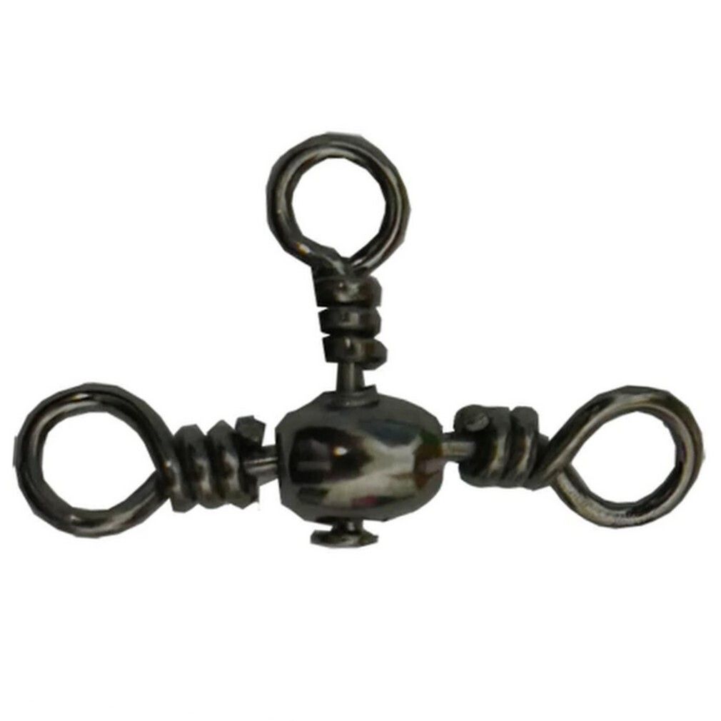 6 Pack of Size 10 Asari Black Crossline 3 Way Fishing Swivels - 12kg
