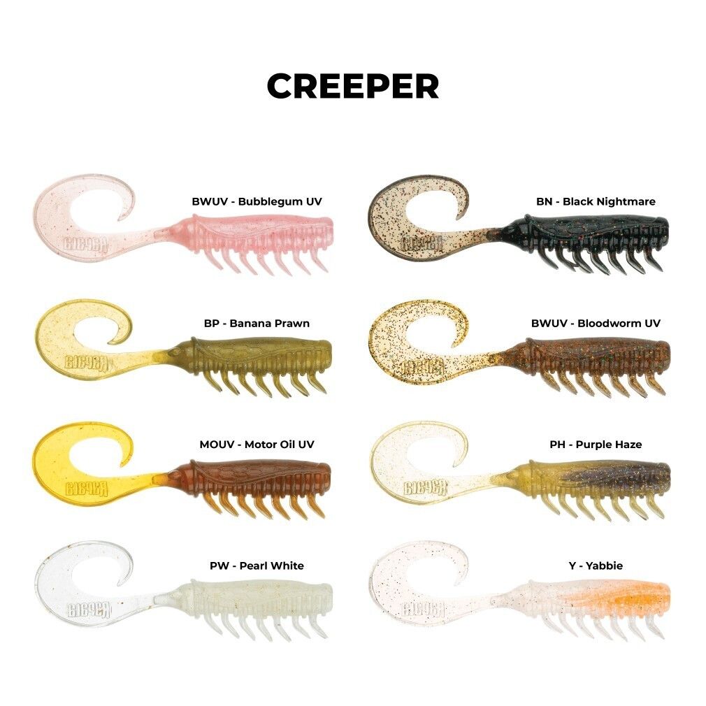 8 Pack of 2.5 Inch Rapala Crush City Creeper Soft Plastic Curly Tail Lures