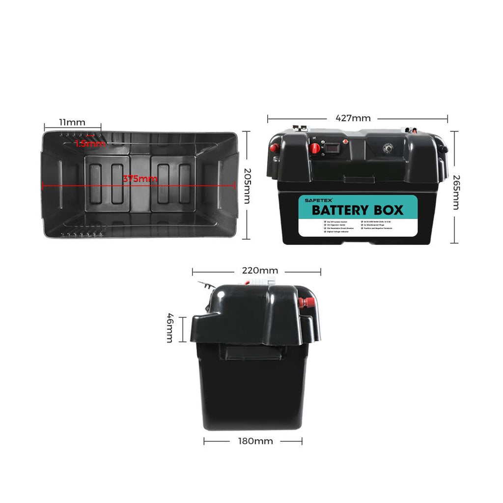 Drop in your AGM, lithium, calcium, flood, gel, or any other battery into your battery storage box. If it looks like a car battery, it will fit. (Check the dimensions first). Protect your battery from the elements.