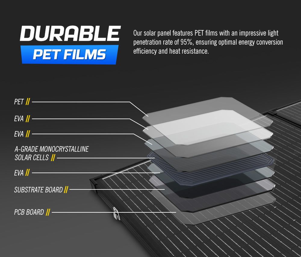 Durable PET Films: Our solar panel features PET films with an impressive light