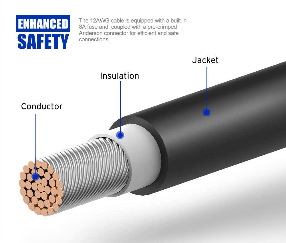 Enhanced Safety: The 12AWG cable is equipped with a built-in 8A fuse and