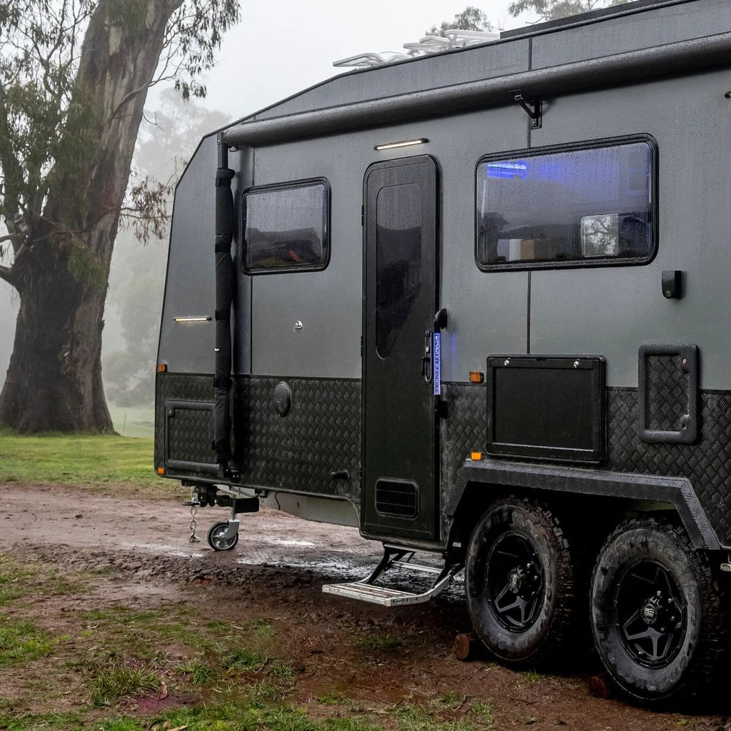 Aussie Traveller Caravan DC Door - RHH - Black - Round Top Corners - 1750 x 622mm