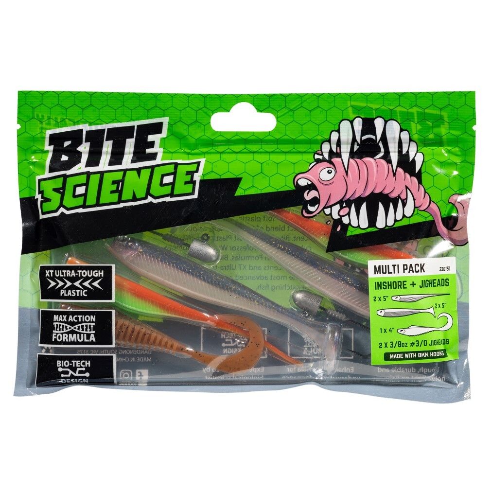Bite Science 7 Piece Multi-Pack of Assorted Inshore Soft Plastics and Jigheads