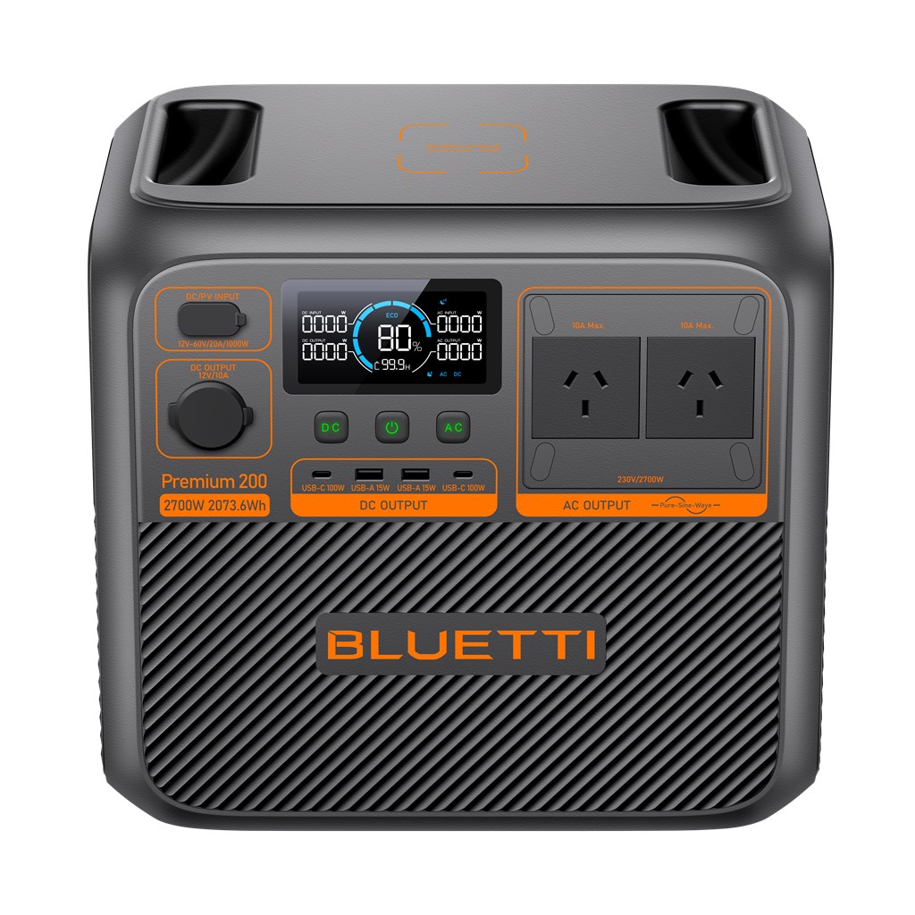 Likely the most compact 2,700W, 2kWh portable hybrid power station in the world, the BLUETTI Premium 200 V2 (also known as the AC270P) delivers an impressive 2,700W UPS power output while weighing just 24kg. Truly remarkable!