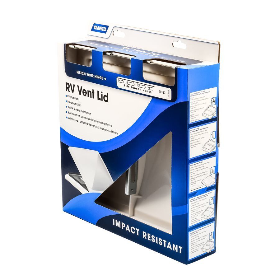 Upgrade your RV's ventilation effortlessly with the Camco Replacement Vent Lid designed specifically for Jensen pin-style vents pre-dating 1994. Crafted from impact-resistant white polypropylene, this replacement vent lid offers durability and reliability.