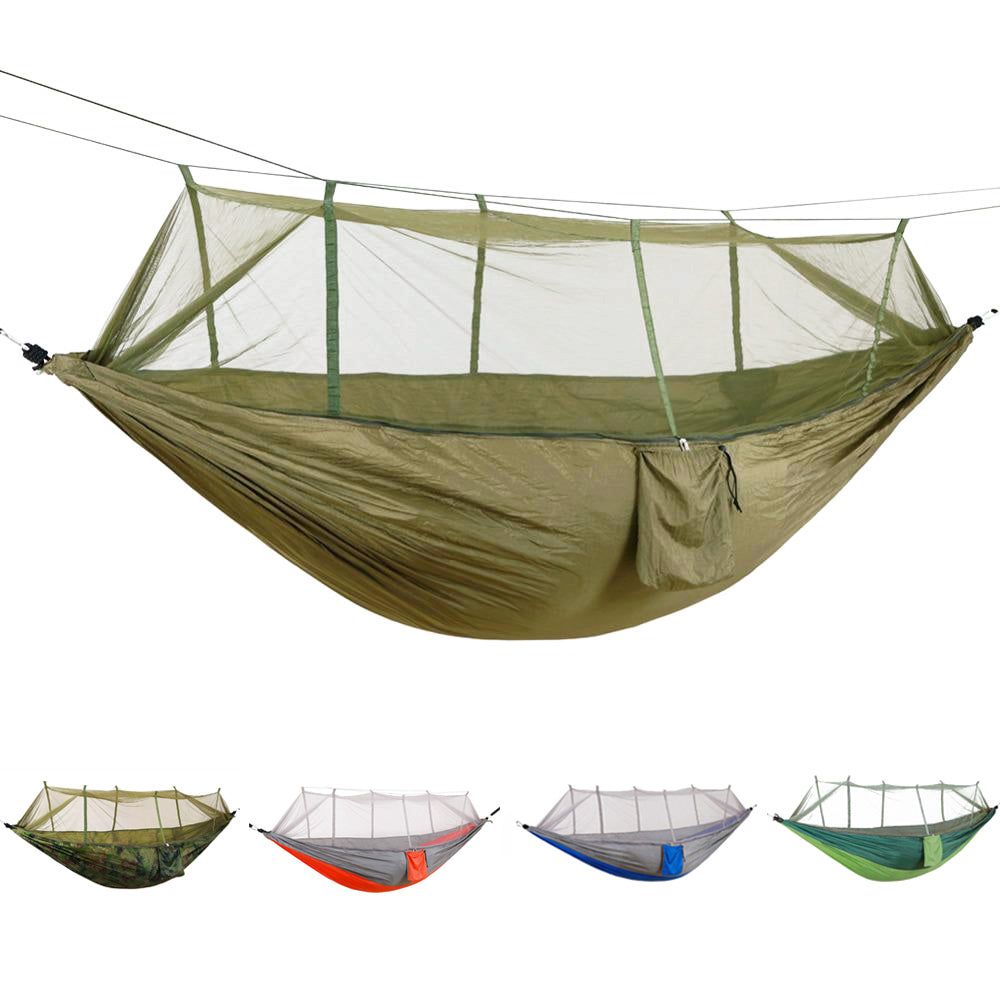 This hammock is a must-have for your next outdoor adventure! Whether you're planning an overnight hike or just love camping under the stars. The mosquito-net hammock is made from high-quality, breathable fabric that can hold up to 200kg, and it has a built-in mosquito net to protect you from bites while you sleep.