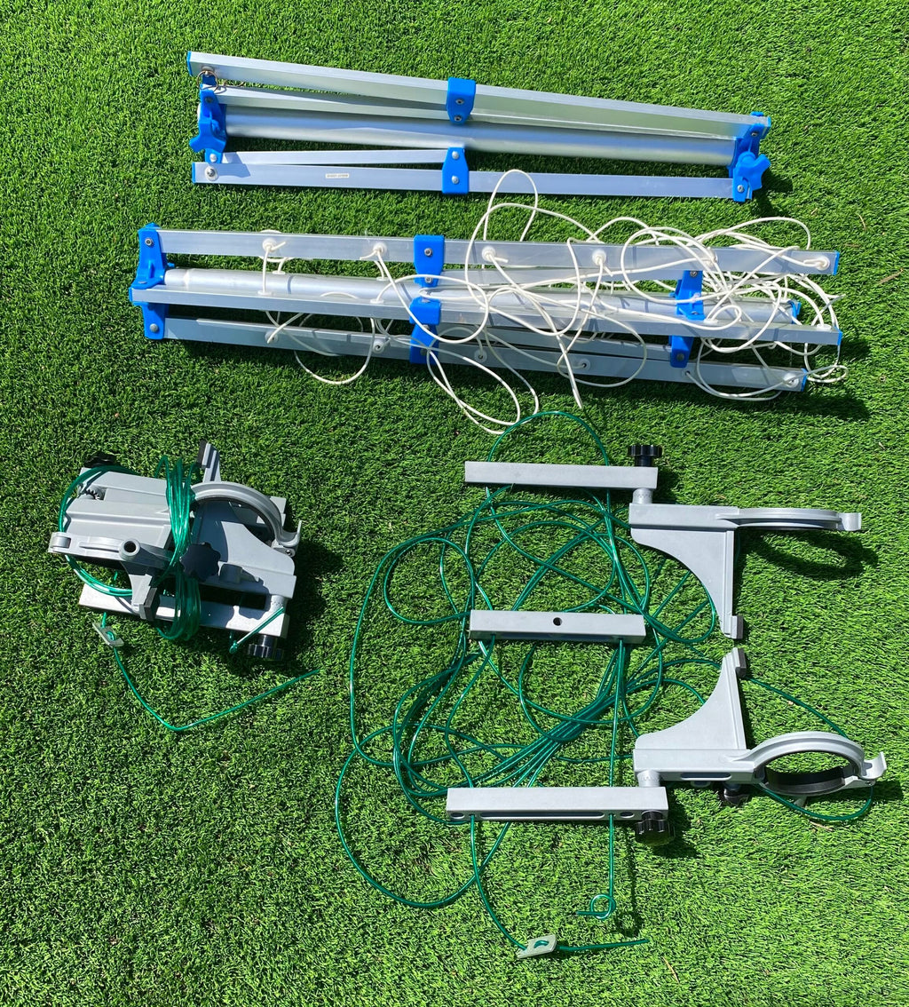 There are two plastic coated wire lines available so plenty of room for all your washing. You will also be saving on electricity costs by not using a dryer. The All-In-One Clothesline Reversible Brackets were designed for all conditions. Users can still install their privacy screen when the brackets are under the awning, therefore you are able to hang your washing in private. The clothesline brackets have been load tested by one of the leading rollout awning suppliers in Australia. See the pictures on our website. The clothesline brackets do not put any load on the side arms. Also, they have a built-in support cradle on each bracket to take the weight of the awning. There are tie down clips built-in as part of the brackets, these built-in items save purchasers the extra cost of buying them separately.