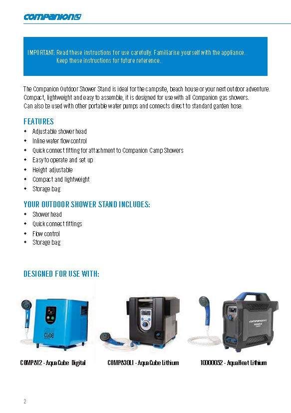 Practical and Versatile: Whether you're using it with an Aquacube model or another water supply system, this outdoor shower stand guarantees an easy-to-operate and adaptable solution for your camping needs. Weighing just 1kg, it's portable and easy to transport for your outdoor adventures.