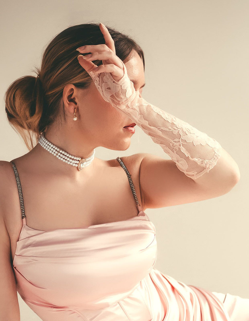Elegant Lace Detailing: Crafted from exquisite blush nylon lace, these gloves offer a luxurious and delicate appearance that complements any formal attire.