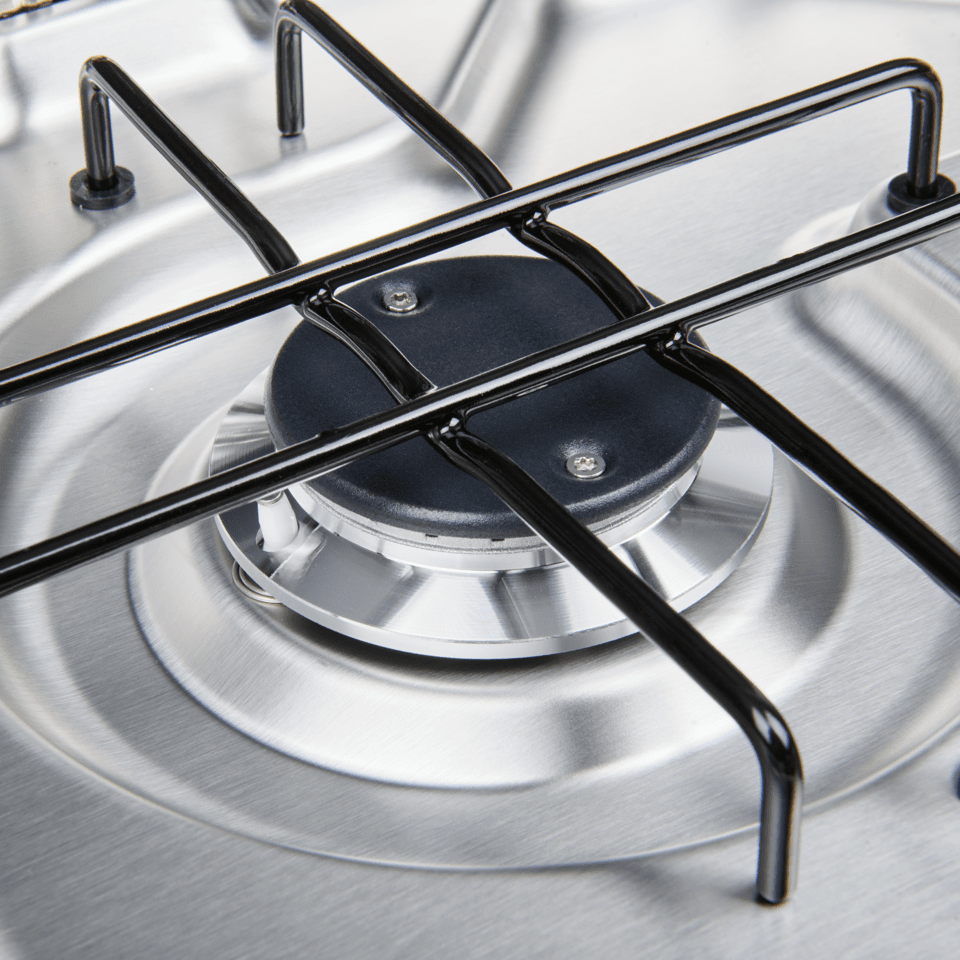 - 2 burners with a high combined heat output of 10.5MJ/h. The small left burner produces 4 MJ/h and the large right burner produces 6.5 MJ/hr.