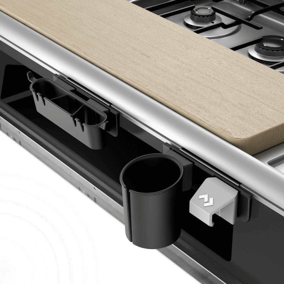 of built-in dual side storage to keep dining and cooking equipment secure.