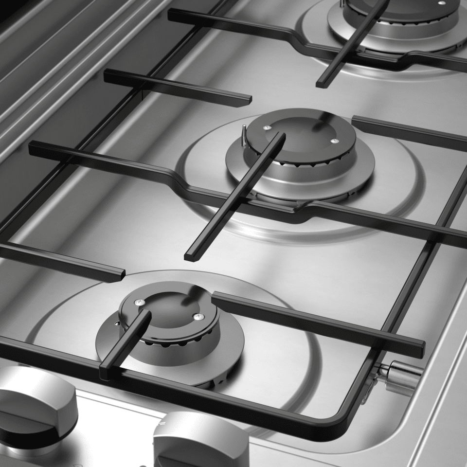 as a 3-burner cooktop, sink, and benchtop. It also features a generous amount