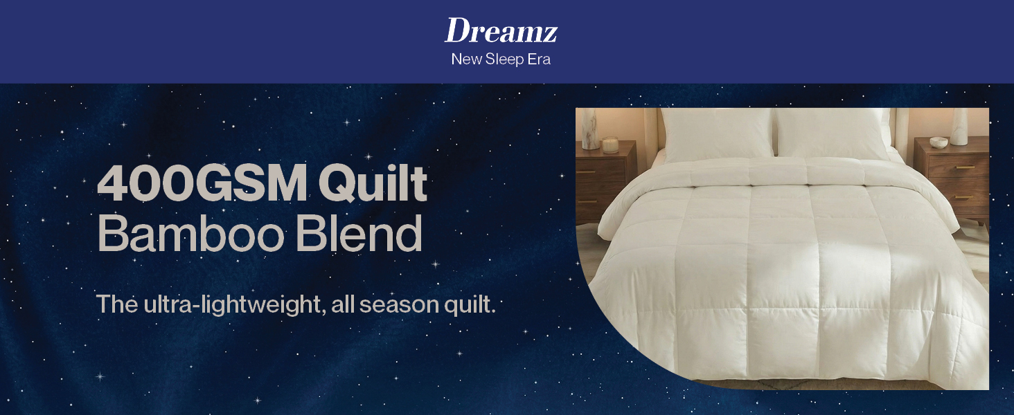 Elevate your sleep quality with the Dreamz Bamboo Doona expertly designed for unparalleled comfort and relaxation throughout the year. This luxurious 400GSM doona is ideal for winter and all-season use featuring a premium bamboo and polyester blend filling that delivers exceptional softness breathability and support. Its ultra-soft cover and natural moisture-wicking properties create the perfect environment for a dry cosy and restful night’s sleep.