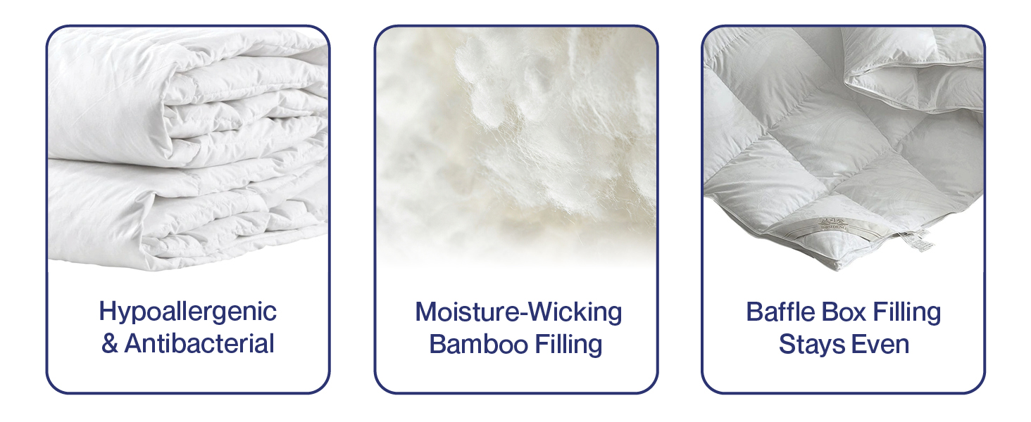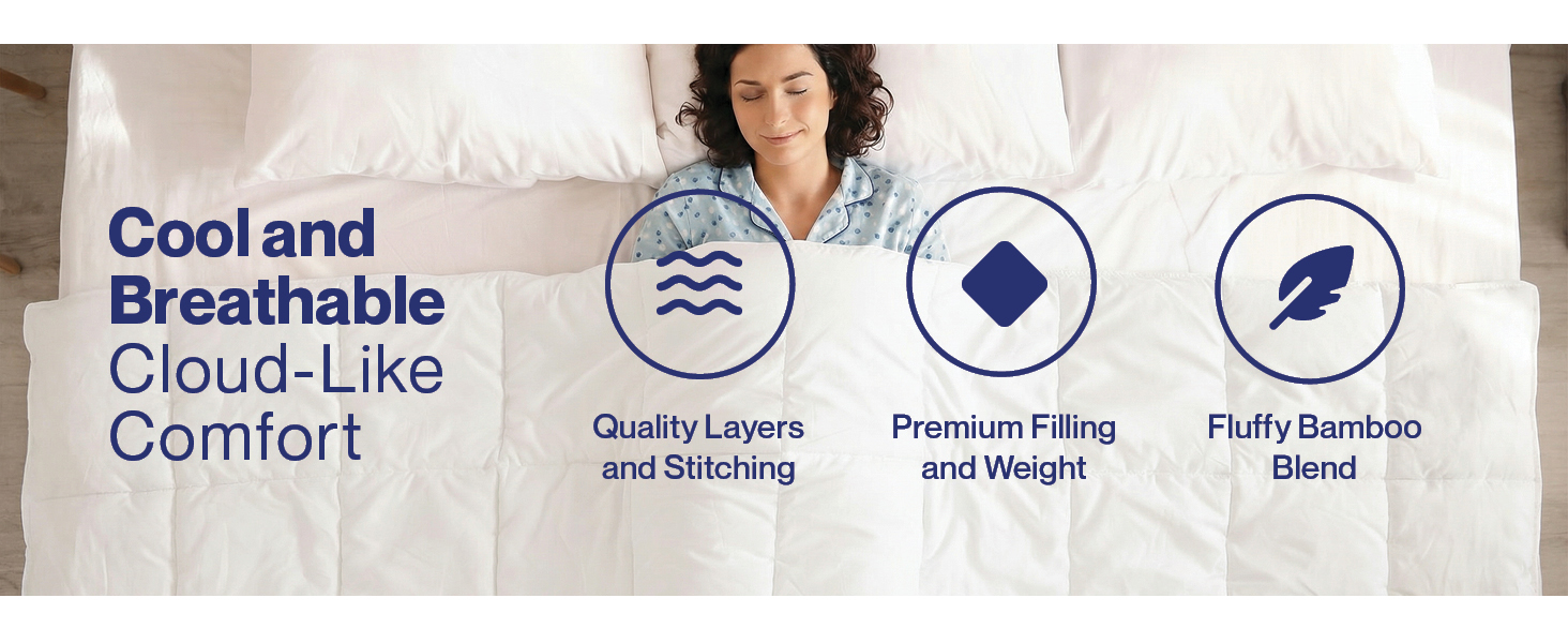 Breathable Bamboo Blend: Experience the best of both worlds. The fluffy bamboo and polyester filling naturally wicks away moisture keeping you optimally warm on chilly winter nights while ensuring a dry and cool sleep experience when the weather turns warmer.