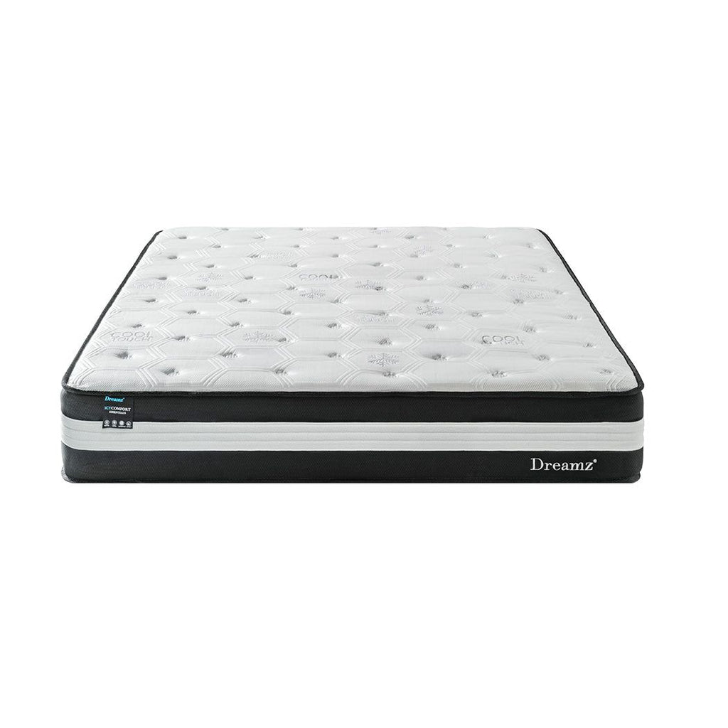 At the heart of this queen pocket spring mattress lies an advanced 5-zone support system with an independent 6-turn coil structure for reduced motion transfer. Topped with cool gel-infused memory foam and an ice silk fabric cover it regulates temperature and minimises heat build-up. Reinforced corners formaldehyde-free materials and dust mite resistance ensure clean long-lasting performance night after night.