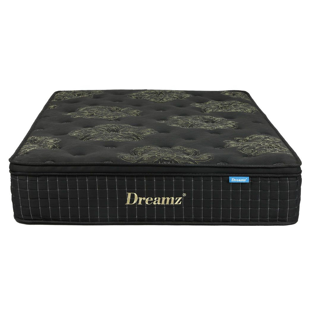 Upgrade your sleep with the Dreamz Black & Gold 34cm Mattress designed for comfort durability and modern luxury. Made with knitted fabric high-density foam 5-zone pocket springs and brushed fabric this hybrid mattress offers the perfect medium firmness (5.0) for balanced support and pressure relief.