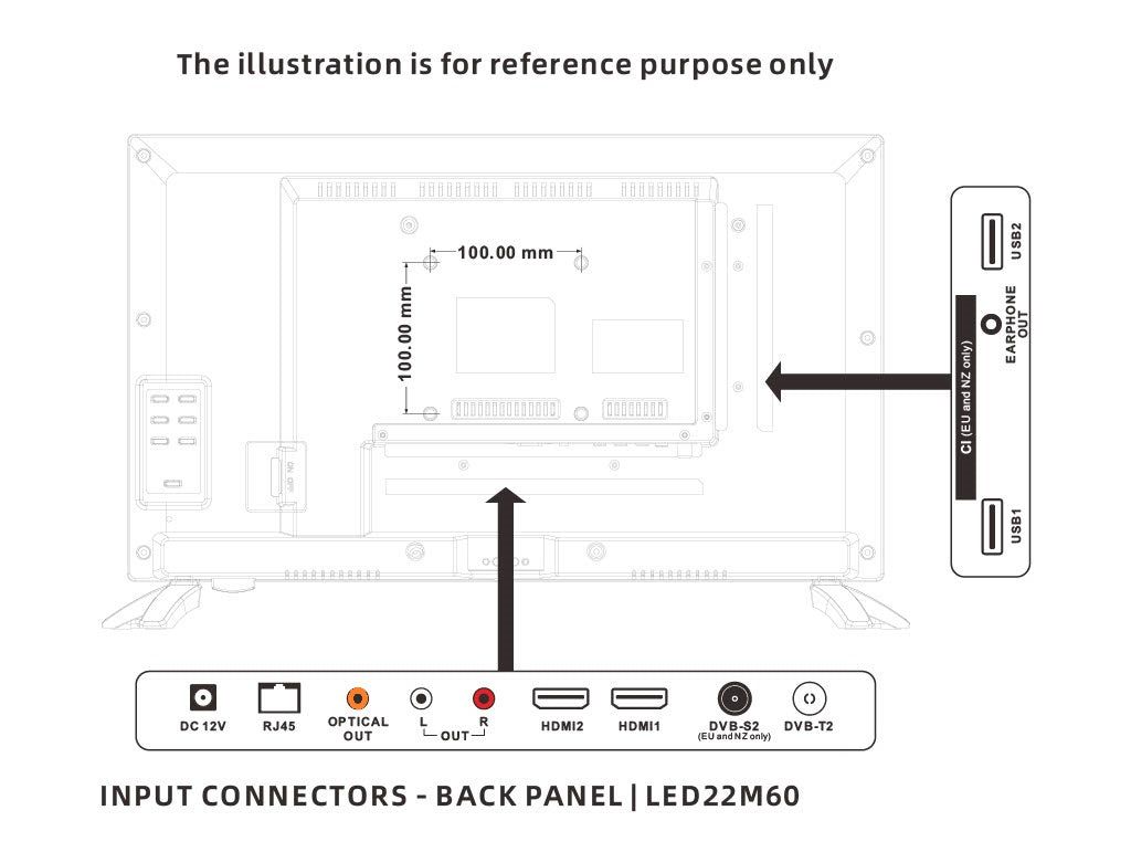 The LED22M60 comes with 2 x 5W built-in speakers for superior portable sound