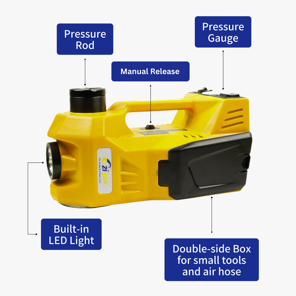 - 2-in-1 Ezijak Electric Hydraulic Jack & Air Compressor
