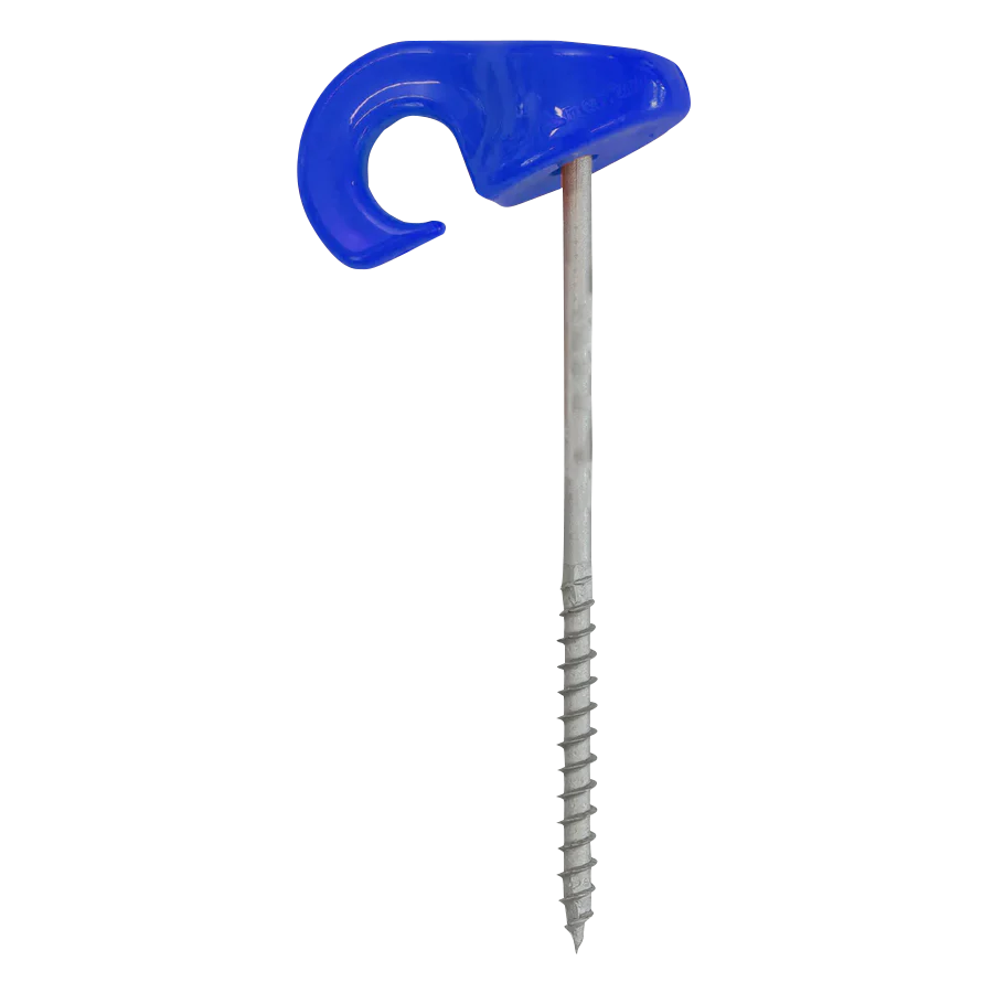 - Place screw through the Ezy Anchor and connect guy rope to the hook.