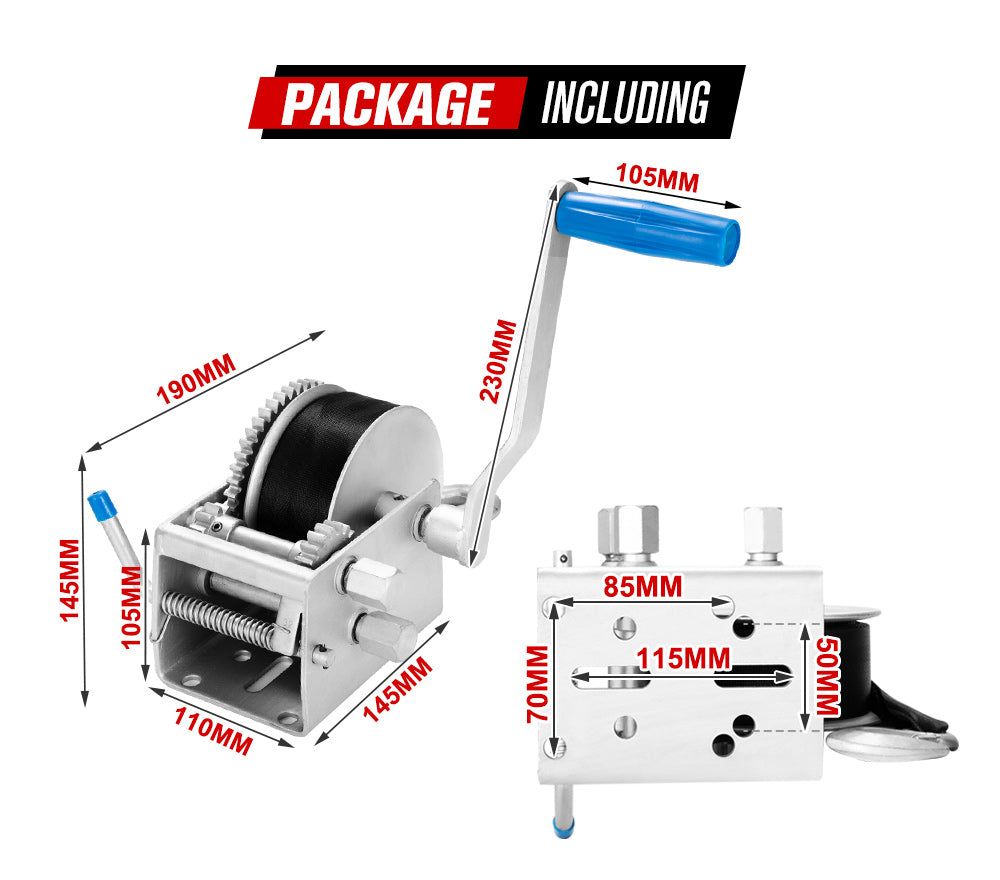 applications. Equipped with 8m x 5cm webbing strap, the Fieryred boat winch