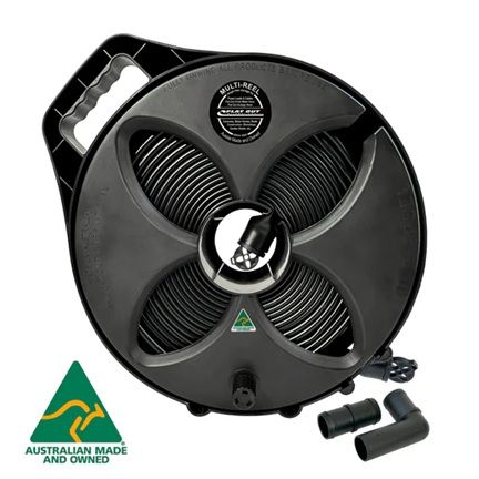 Includes: 1 x 3m plus 1x 6m 32mm hose, Multi-Reel, 2 End-Caps, 1 barbed straight joiner & 1 barbed elbow drain adaptor.