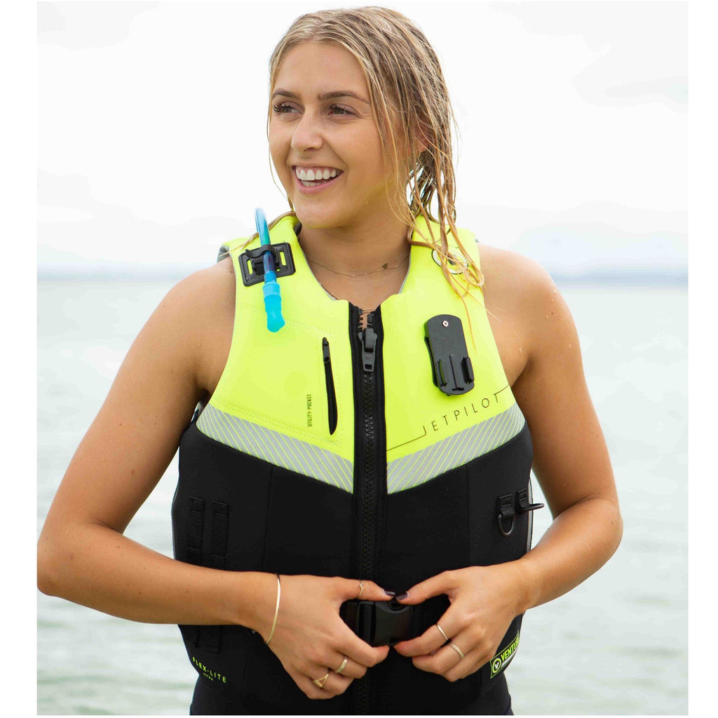 The Jetpilot Venture Front Entry Ladies L50 Neo Life Jacket is a top-of-the-line life vest that has it all. The vest is made with 100% flex lite ultra neoprene and is AU standards approved, so you can rest assured knowing you're getting a quality product. Additionally, this vest features hidden zip away supergrip handles, a GoPro mount, reflective safety tape, and a durable PK Lok zip. Plus, with three external storage pockets and Freelite buoyancy foam. The vest also comes with multiple D rings and webbing storage loops, a rear zip hydration pack pocket (Hydration bladder available for purchase separately). So whether you're participating in personal watercraft activities or fishing, this vest has everything you need to stay safe and comfortable.