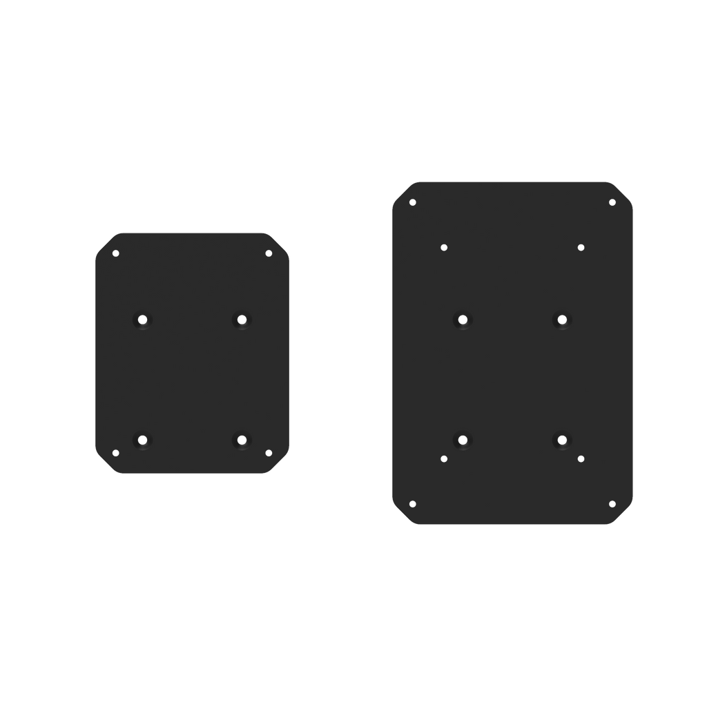 2 x Speaker Stands, 2 x Small Top Plates, 2 x Large Top Plates, 2 x Foam Pads for Small Top Plates, 2 x Foam Pads for Large Top Plates, 2 x Bags for Filling Material, Hardware, Manuals