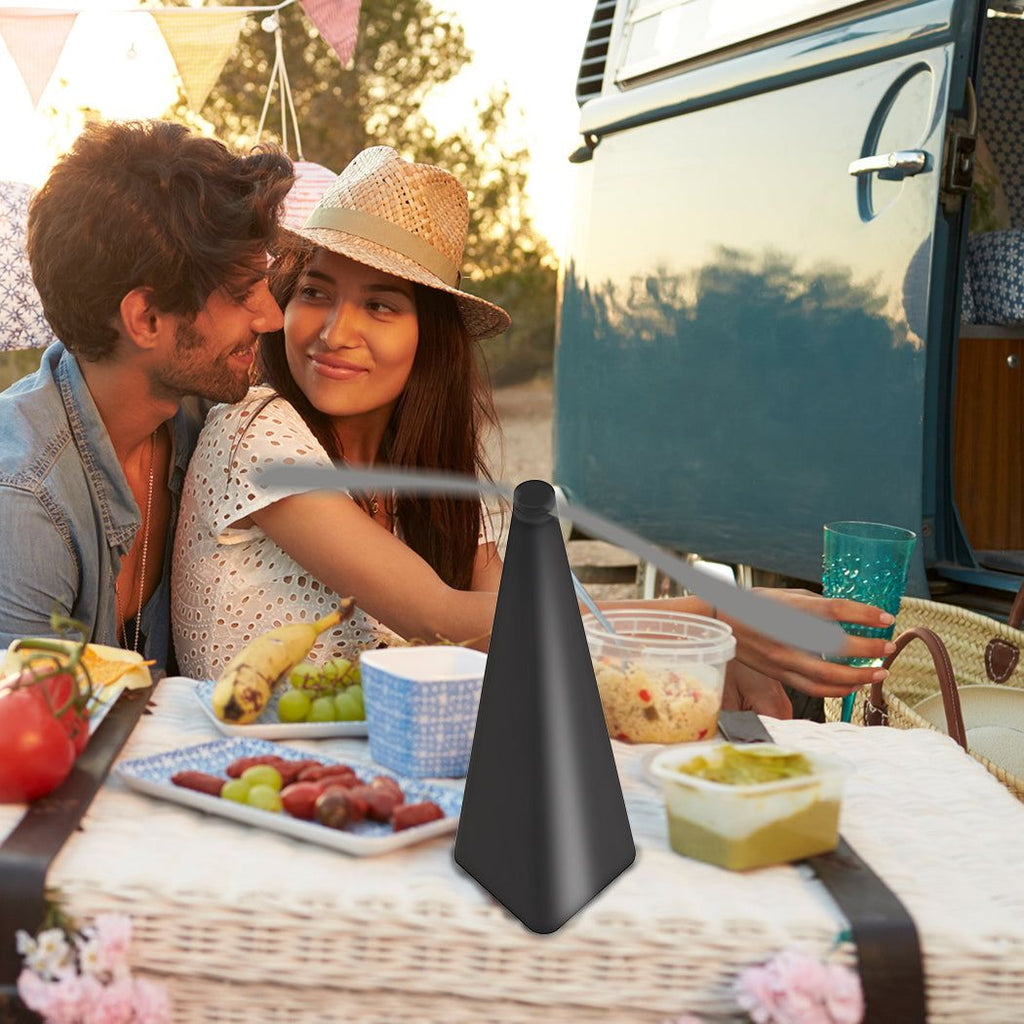 Our fly repeller uses soft rotating blades that continuously move to keep flies away. Completely chemical-free and odorless it's safe to use around children pets and food. No risk of exposure to toxins — just pure peaceful dining. The portable fly repellent is lightweight and cordless running on batteries for maximum convenience. Whether you're hosting a barbecue camping or having a quiet meal at home this battery operated fly repeller goes wherever you go.
