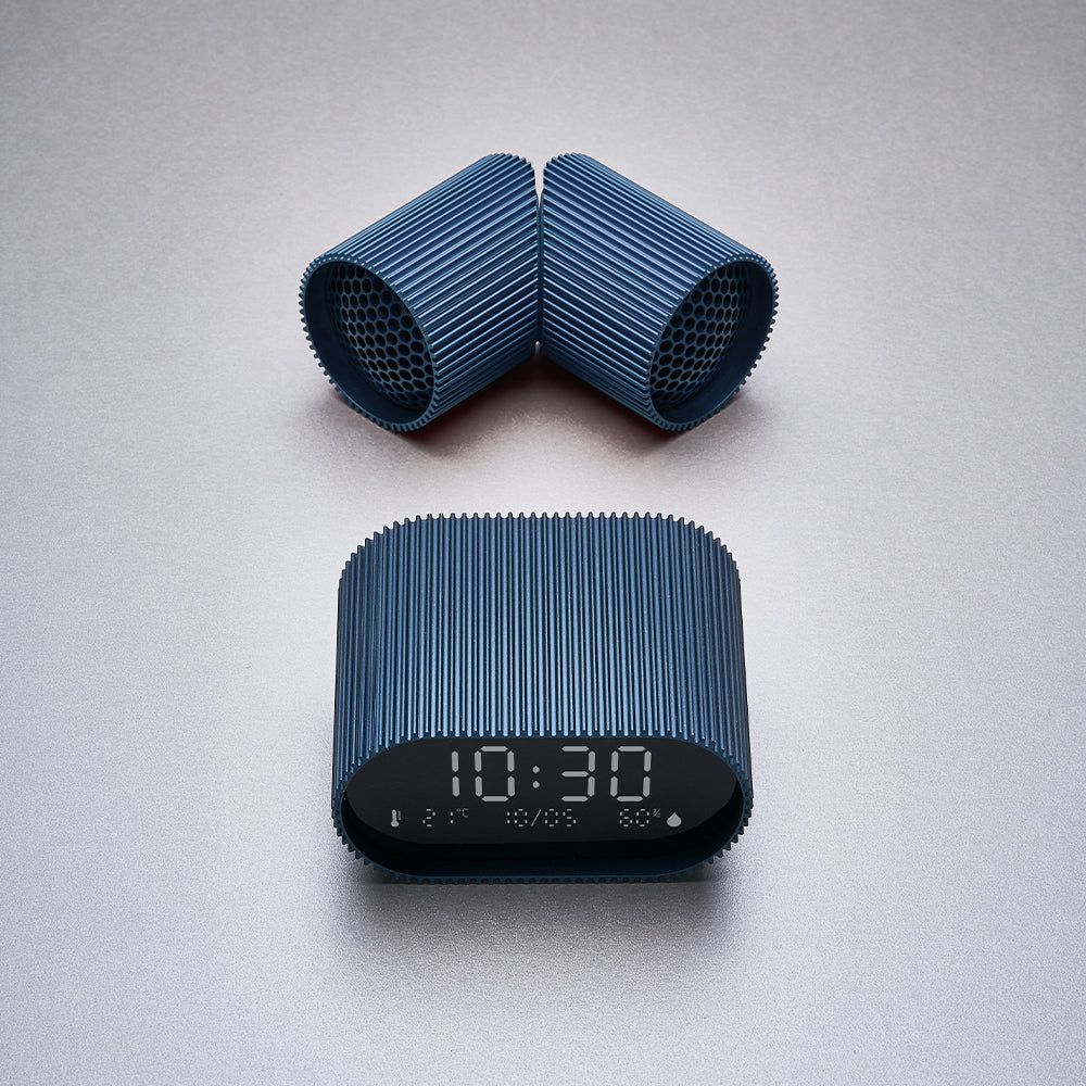 Lexon Ray Clock Lcd Alarm Clock With Temperature / Humidity Display - Blue - Discover Ray Clock alarm clock, the essential companion for gentle awakenings and peaceful nights. Equipped with a pure black VA LCD screen ensuring clear visibility at all times, ambient temperature and humidity sensors, it displays useful information for your daily well-being. Designed to be easy to use, simply tilt the alarm clock on its base to disable it and upright it to activate it. Ray Clock offers a wide choice of melodies and natural sounds to wake you up gently. Its night mode allows you to sleep peacefully, without being disturbed by the light of the screen. Ray Clock features a minimalist and elegant design, with its case made entirely of aluminum with unique stripes which will bring a touch of modernity to your room. Available in many colours, it will fit harmoniously into your interior. Offering up to 6 months of battery life, Ray Clock is rechargeable via USB-C. Say goodbye to the hassle of dead batteries! You can rely on your alarm clock to accompany you for several months without worrying about frequent recharging.