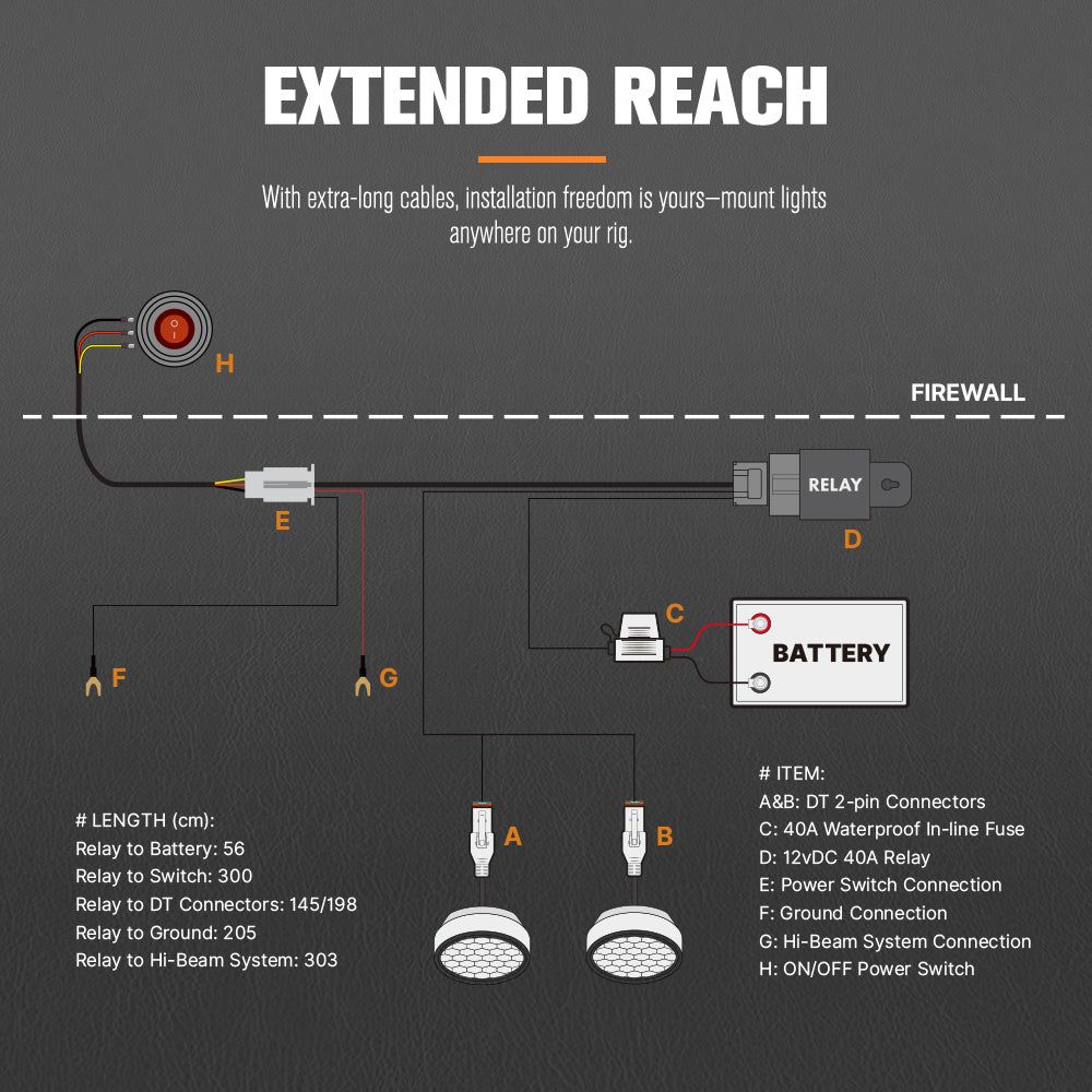 terrain. The 40A relay handles high current loads, keeping your lights bright