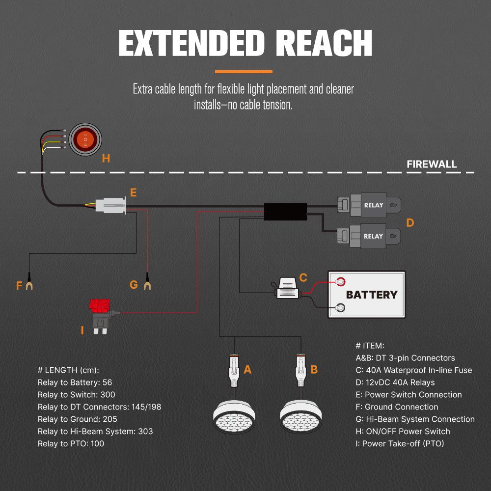 With waterproof DT 3-pin connectors and a 40A in-line fuse, your setup stays