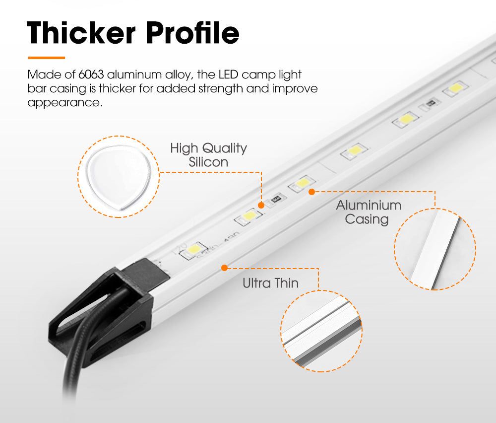 Energy Efficient: Leave our LED camp light bar kit on all night without